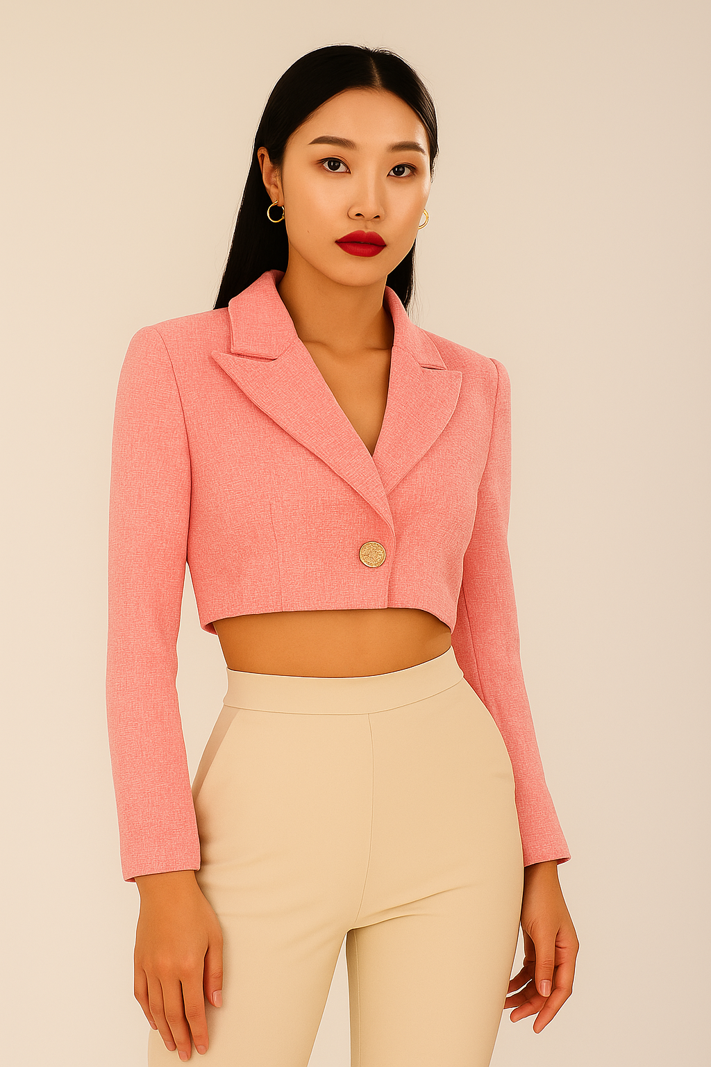 Step confidently into style with the Tweed Crop Top Blazer in Pink. Made from lightweight tweed and lined for comfort, this blazer perfectly balances classic elegance and modern flair. Its cropped design adds a fresh, trendy touch that elevates any outfit, while the soft lining ensures all-day wearability. Whether dressing up or down, this blazer will become your go-to piece for a look that’s both timeless and effortlessly chic. Transform your wardrobe and boost your confidence with this must-have blazer.